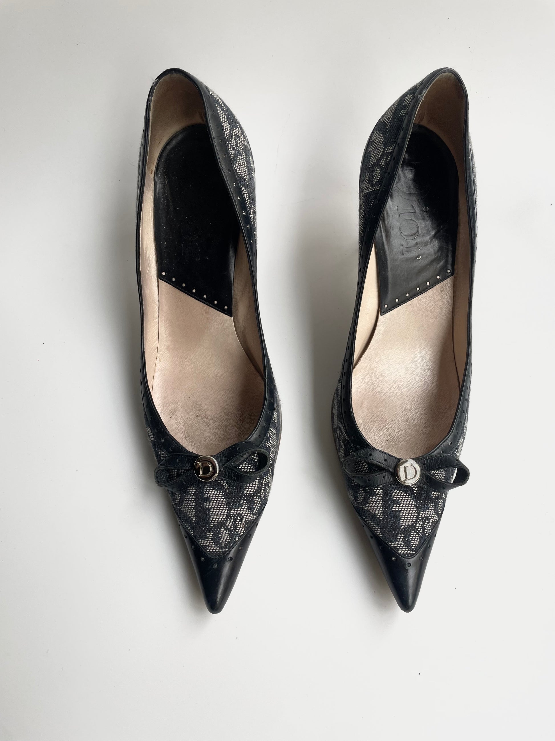 Dior navy oblique canvas monogram Galliano era courts 37.5