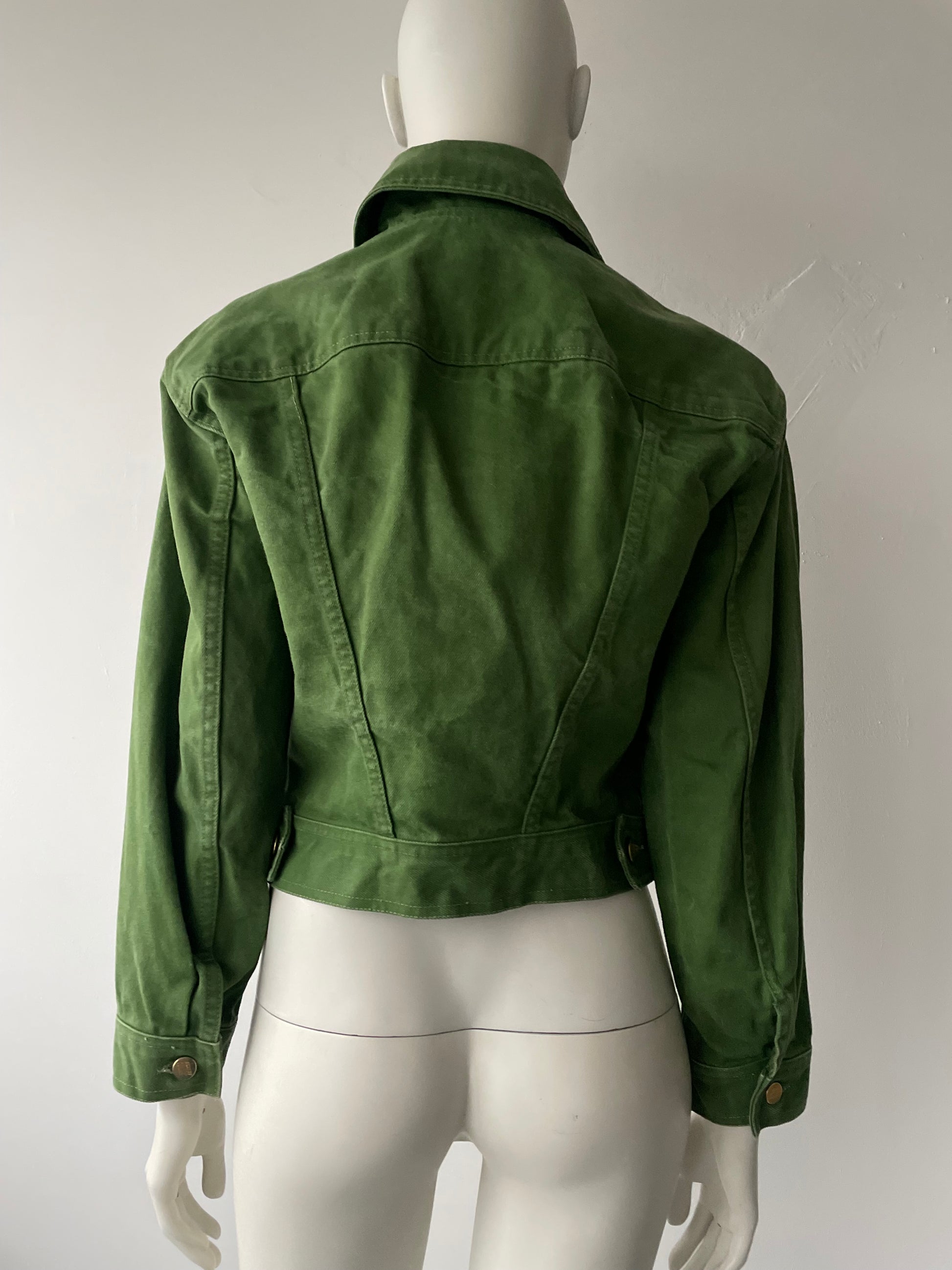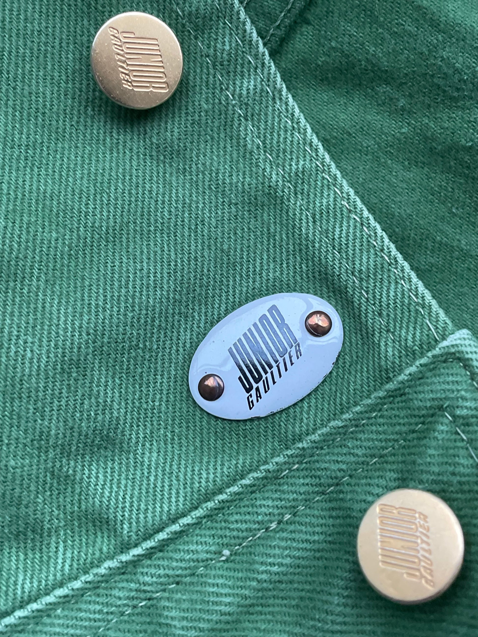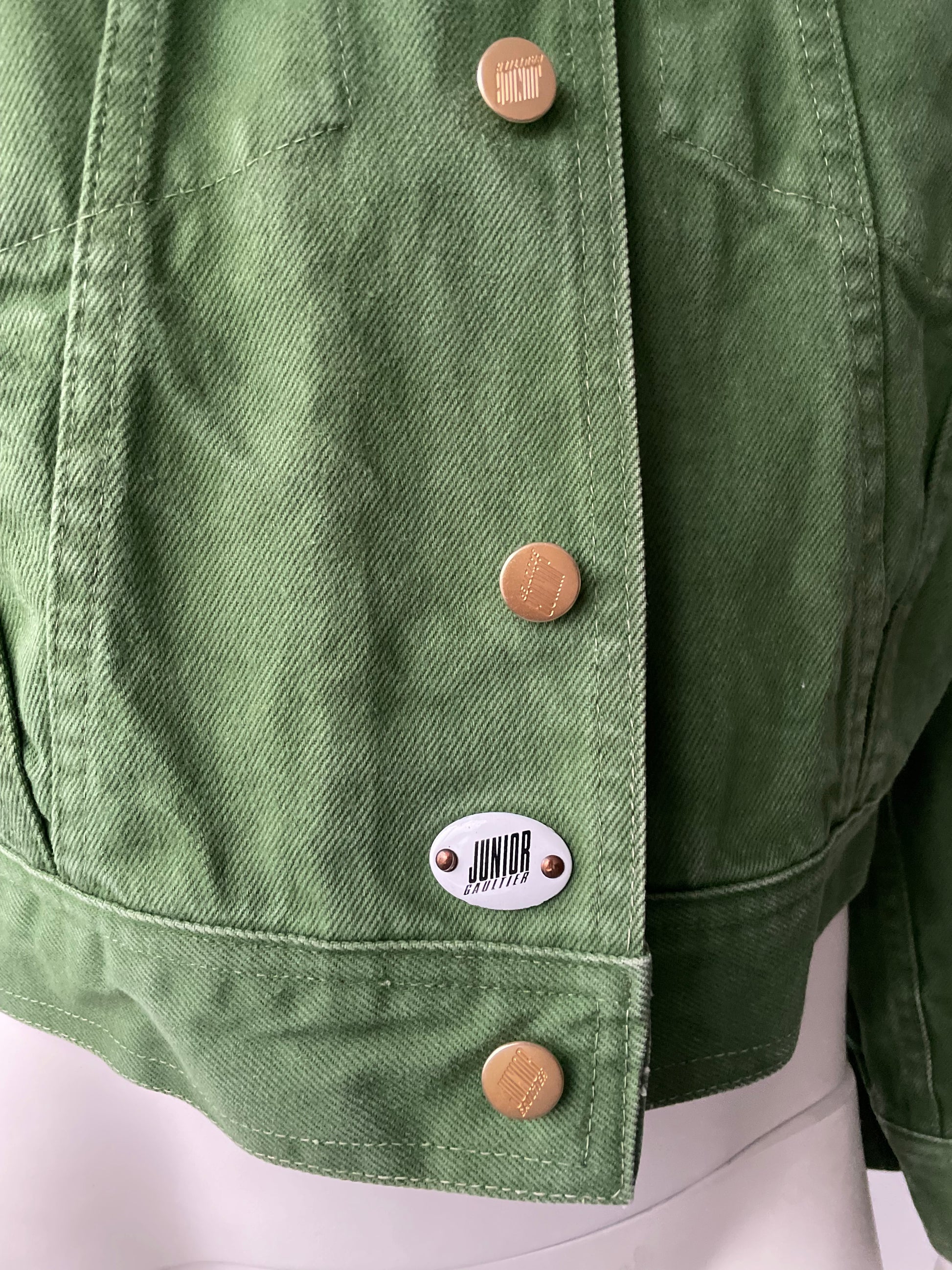 Super cool Jean Paul Gaultier Junior green denim boxy fit jacket. Size Small however I would say it is oversized fit. Measurements: