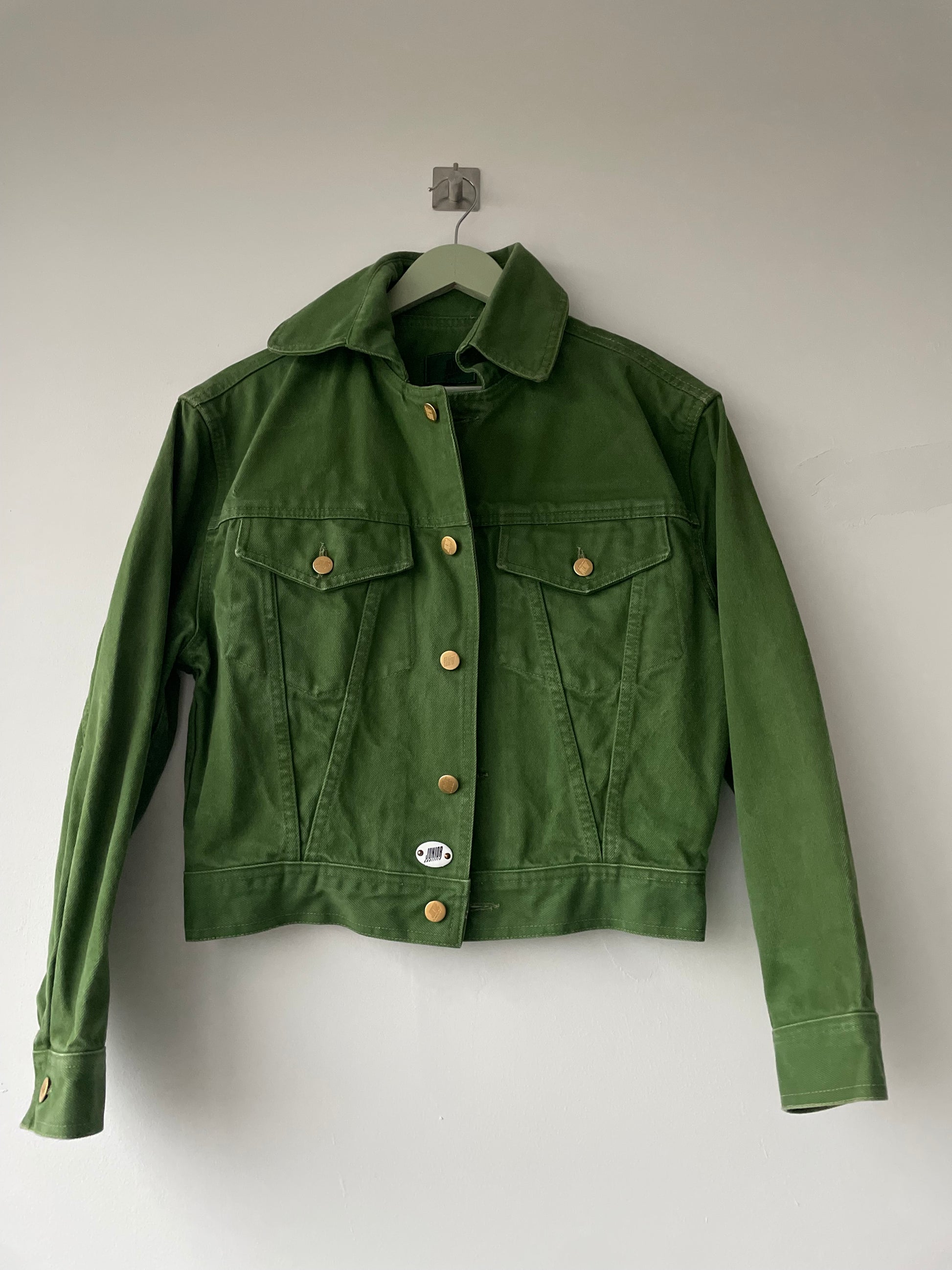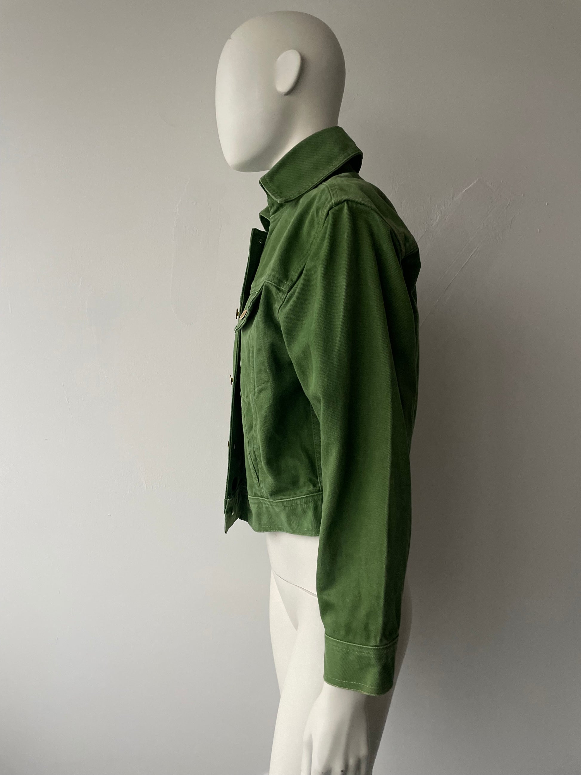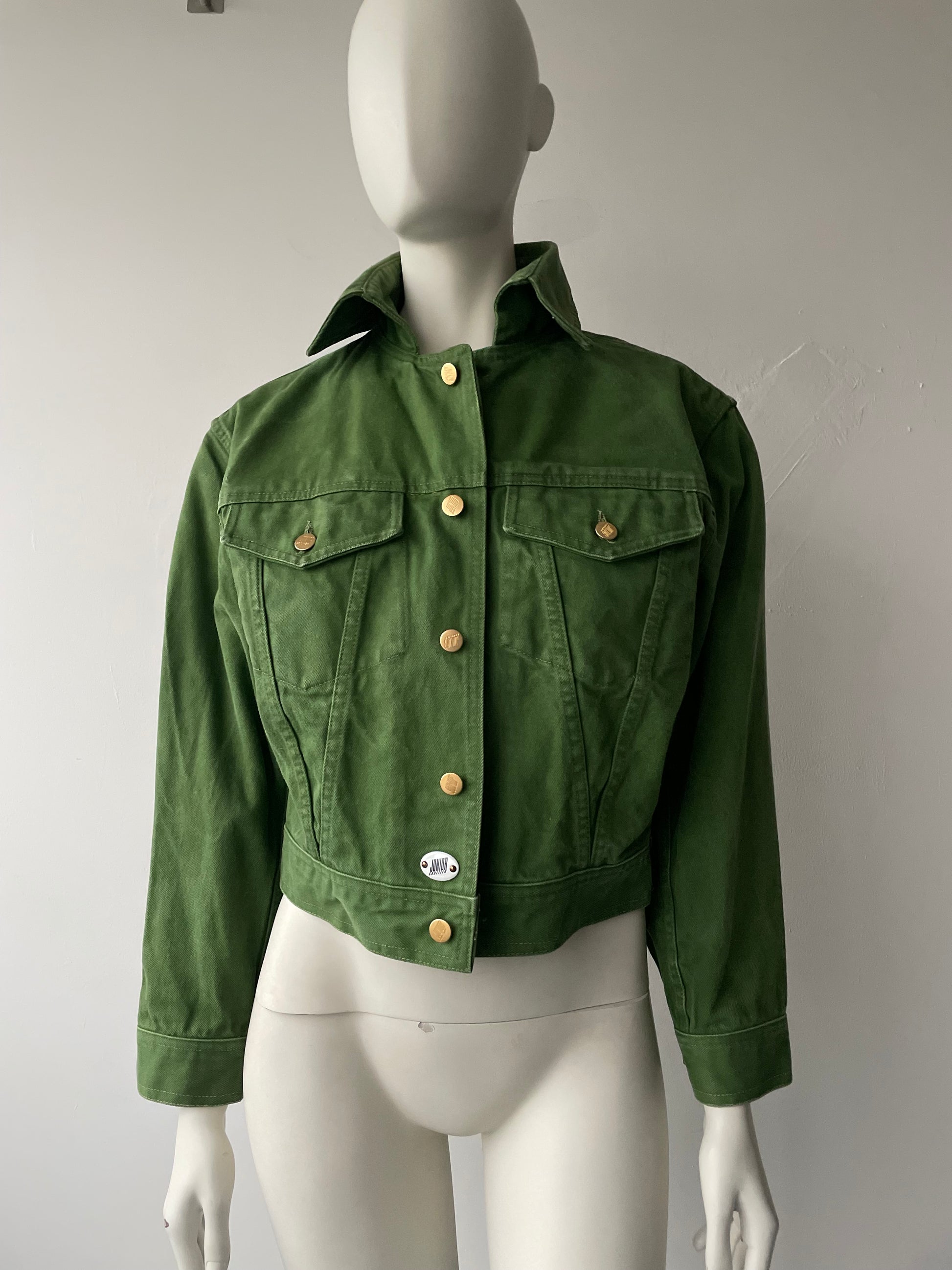 Super cool Jean Paul Gaultier Junior green denim boxy fit jacket. Size Small however I would say it is oversized fit. Measurements: