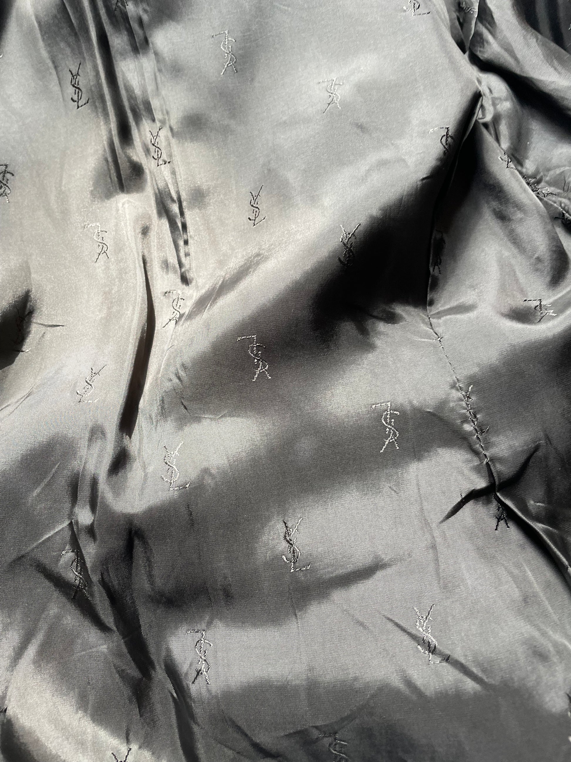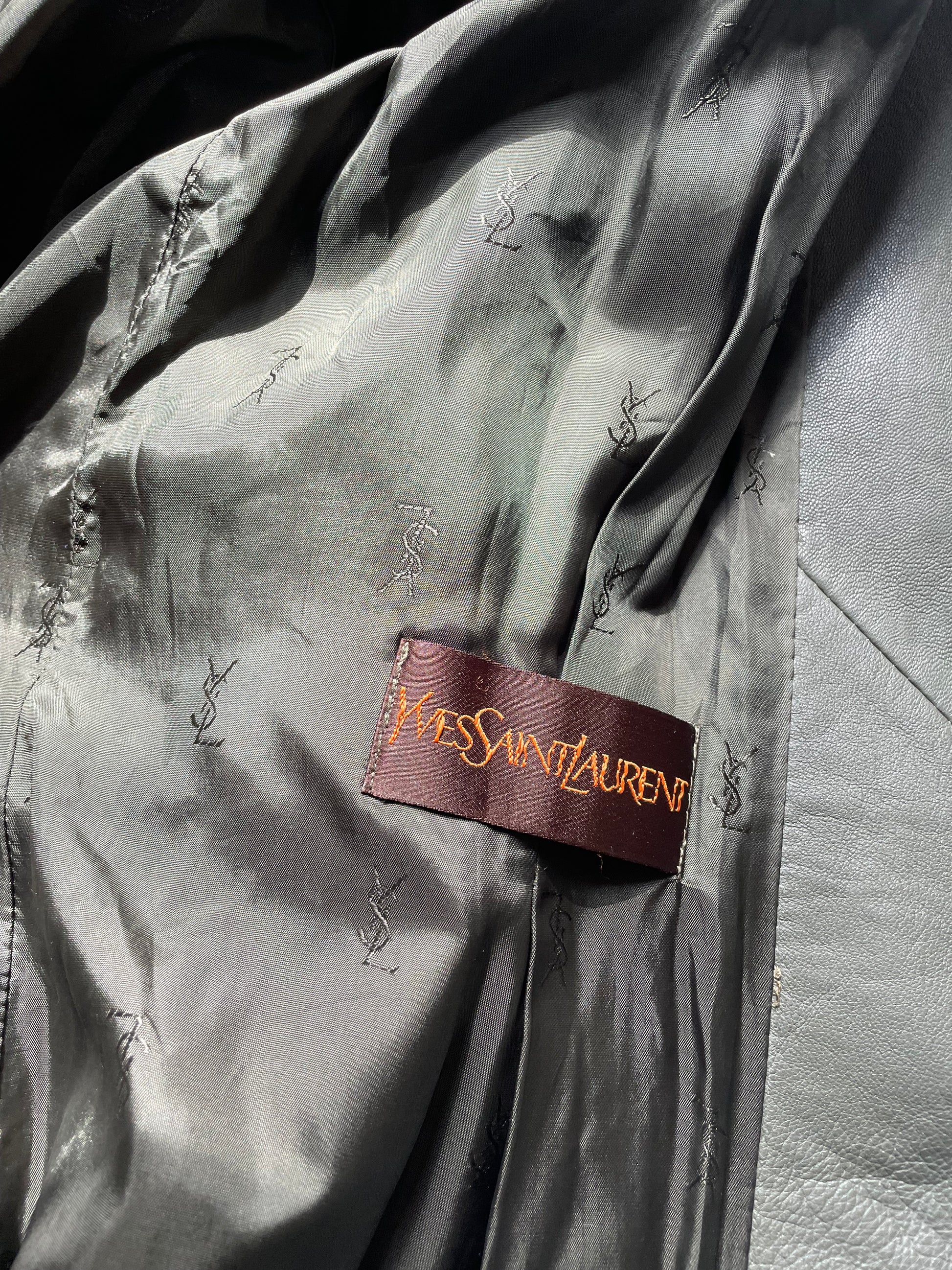 Yves Saint Laurent 1980s vintage volume shoulders belted khaki leather jacket